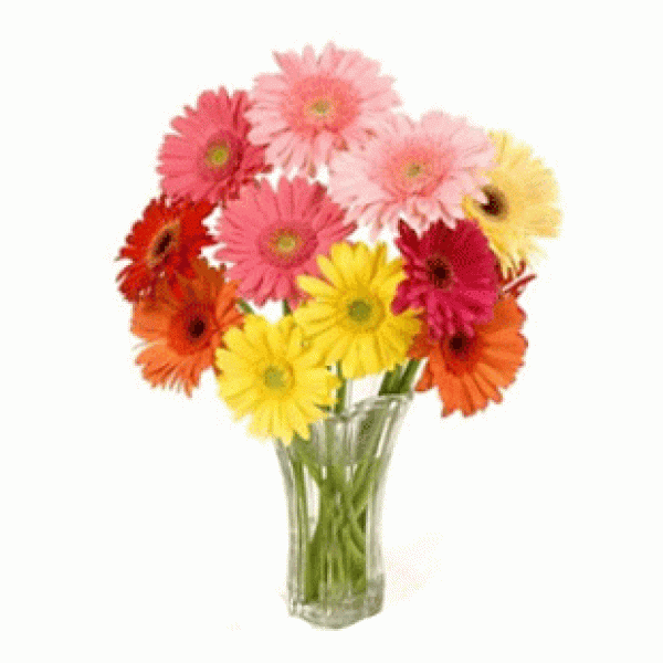 12 Multicolor Gerbera Vase